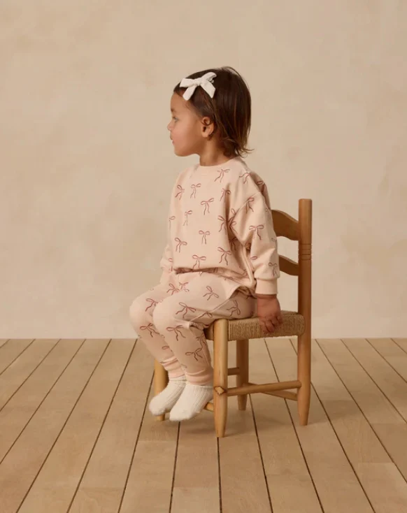 Quincy Mae set outfit bow print sweatshirt and sweatpants - antique