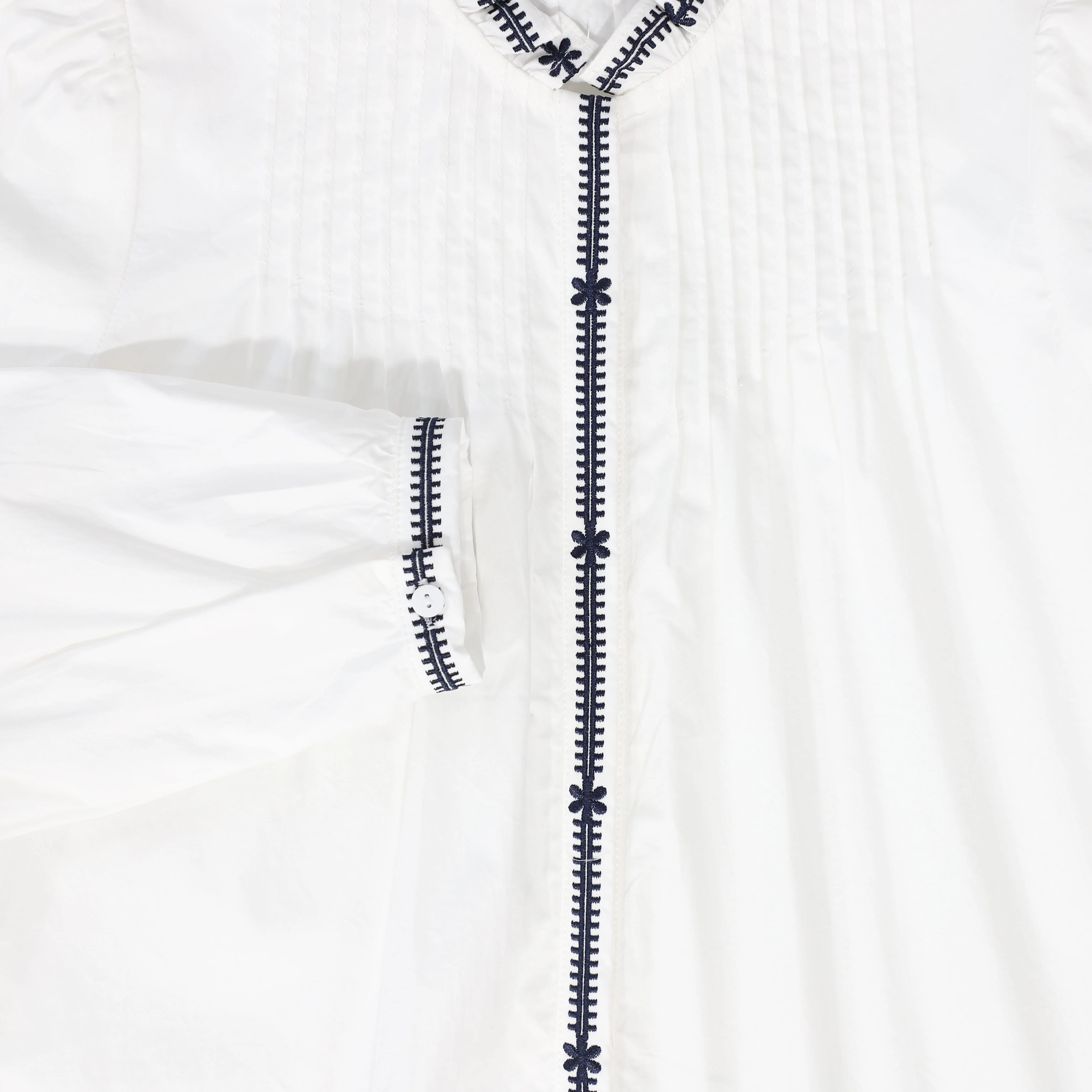 shirt l/s pleated blouse with ruffle collar - white